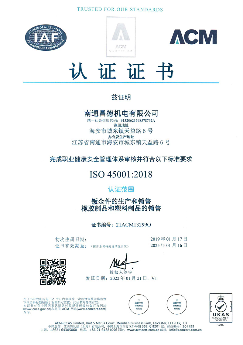 | ISO45001認證證書 |